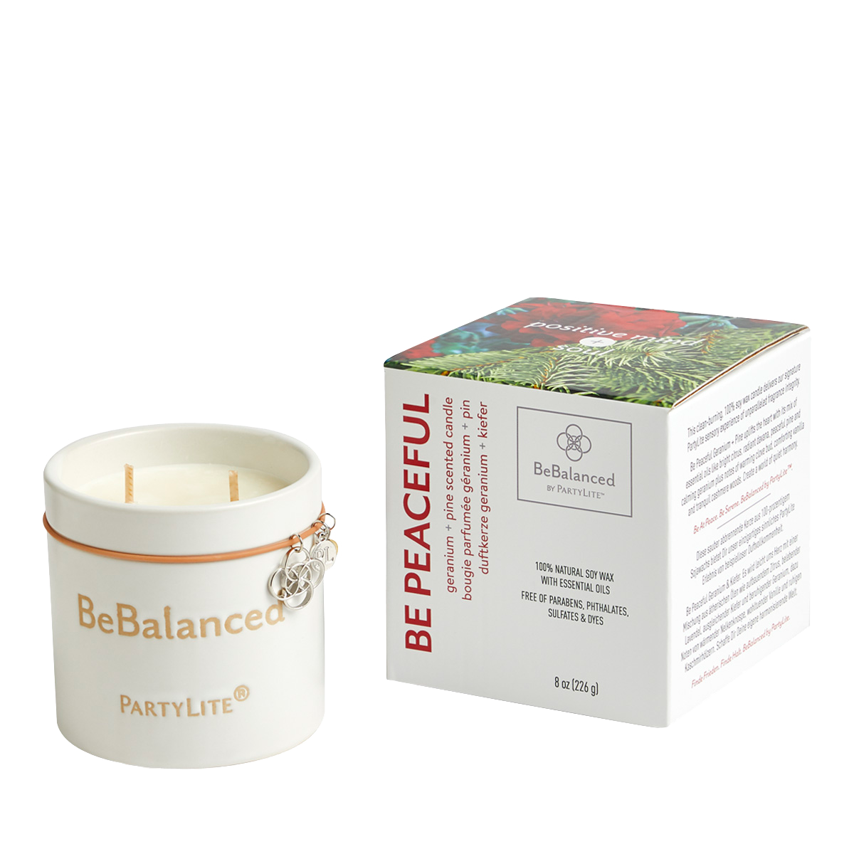 Unwind and indulge in our brand new Be Peaceful Geranium + Pine Jar Candle. It uplifts the heart with its mix of essential oils like bright citrus, radiant davana, peaceful pine and calming geranium plus notes of warming clove bud, comforting vanilla and tranquil cashmere woods. Create a world of quiet harmony. Be At Peace. Be Serene.