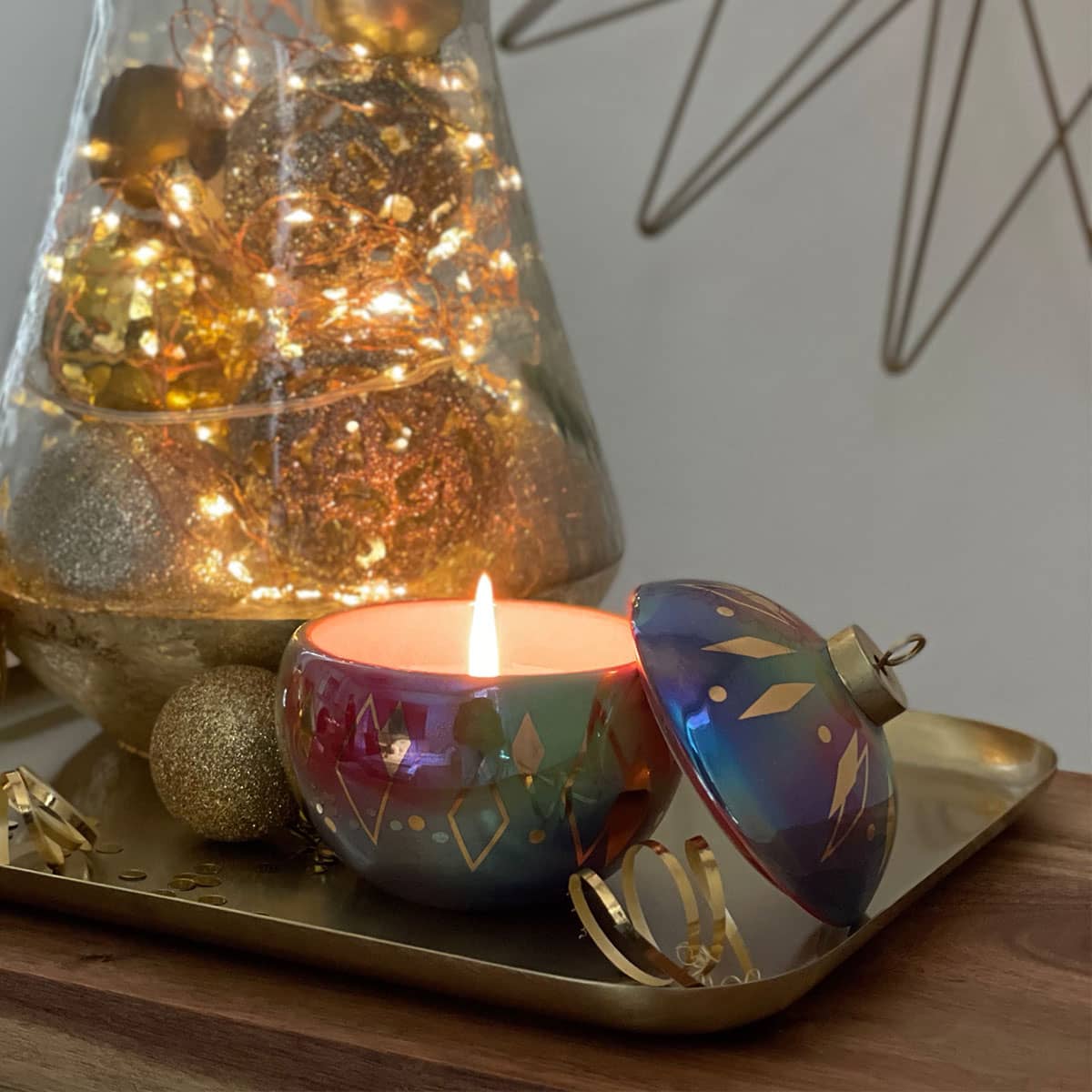 Christmas is here with our stunning ceramic Ornament Jar Candle, perfect to deck your halls with the aroma of Candied Berries. Bright and bold cranberry and blackberries meet festive crystallized sugar with a flourished topping of bourbon, it’s a very merry holiday treat.