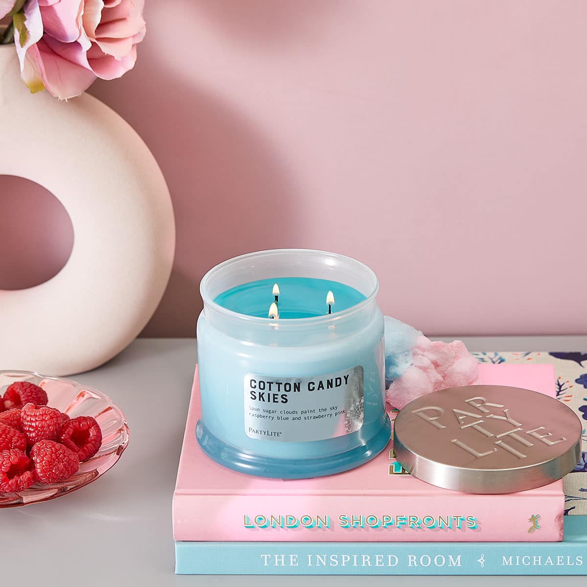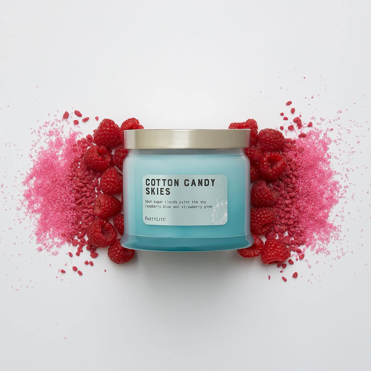 Cotton Candy Skies is made to be enjoyed to the fullest with our 3-Wick scented Jar candles, our finest fragrance experience in clean-burning wax. In a bold glass jar design, the scent of spun sugar clouds paint the sky raspberry blue and strawberry pink.