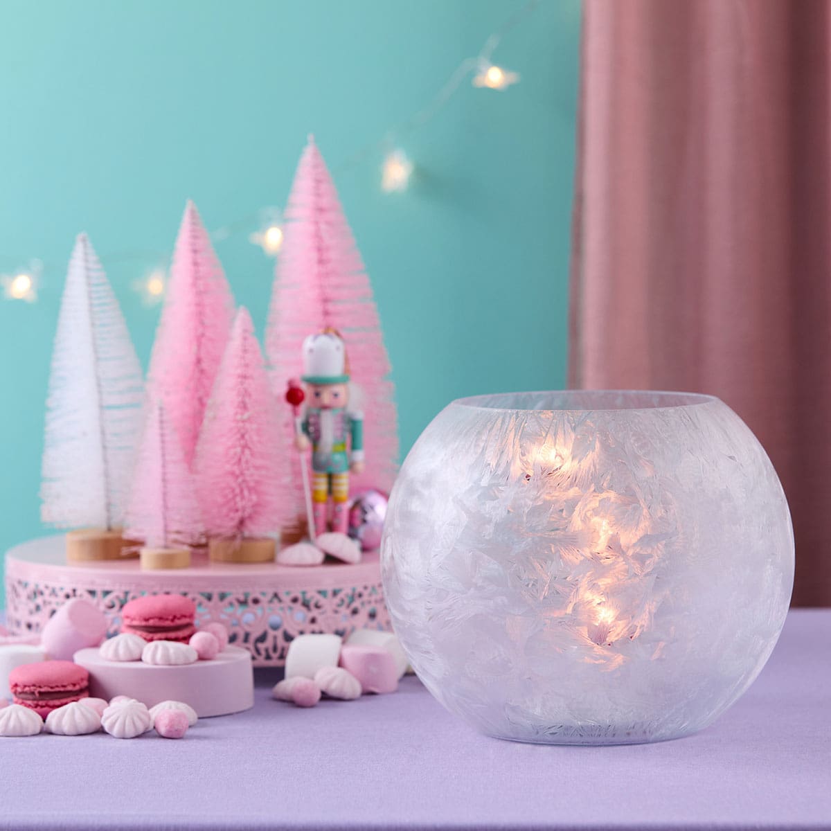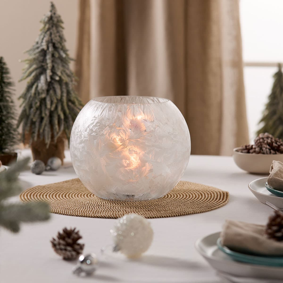 Crafted through a special process that creates a beautiful frosted ice finish, each piece is truly one of a kind – just like a snowflake. Delicate and full of seasonal charm, it should be handled with care to preserve its shimmering beauty. This elegant set includes a 3-Tealight Tree, thoughtfully designed to pair with the Crystalline Large Tealight Holder. Whether used with jars or large tealights, it brings a warm, festive glow to your home – perfect for cozy winter nights and sparkling holiday displays.