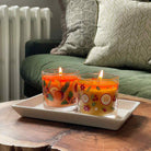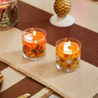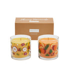 Find your favorite fall fragrance with this duo of mini candle jars. Each decorated jar features colored wax, infused with two of our newest autumnal scents. Enjoy Apricot Peach Preserve and Cinnamon Apple Cider fragrances one at a time, or light them together for a unique blend.