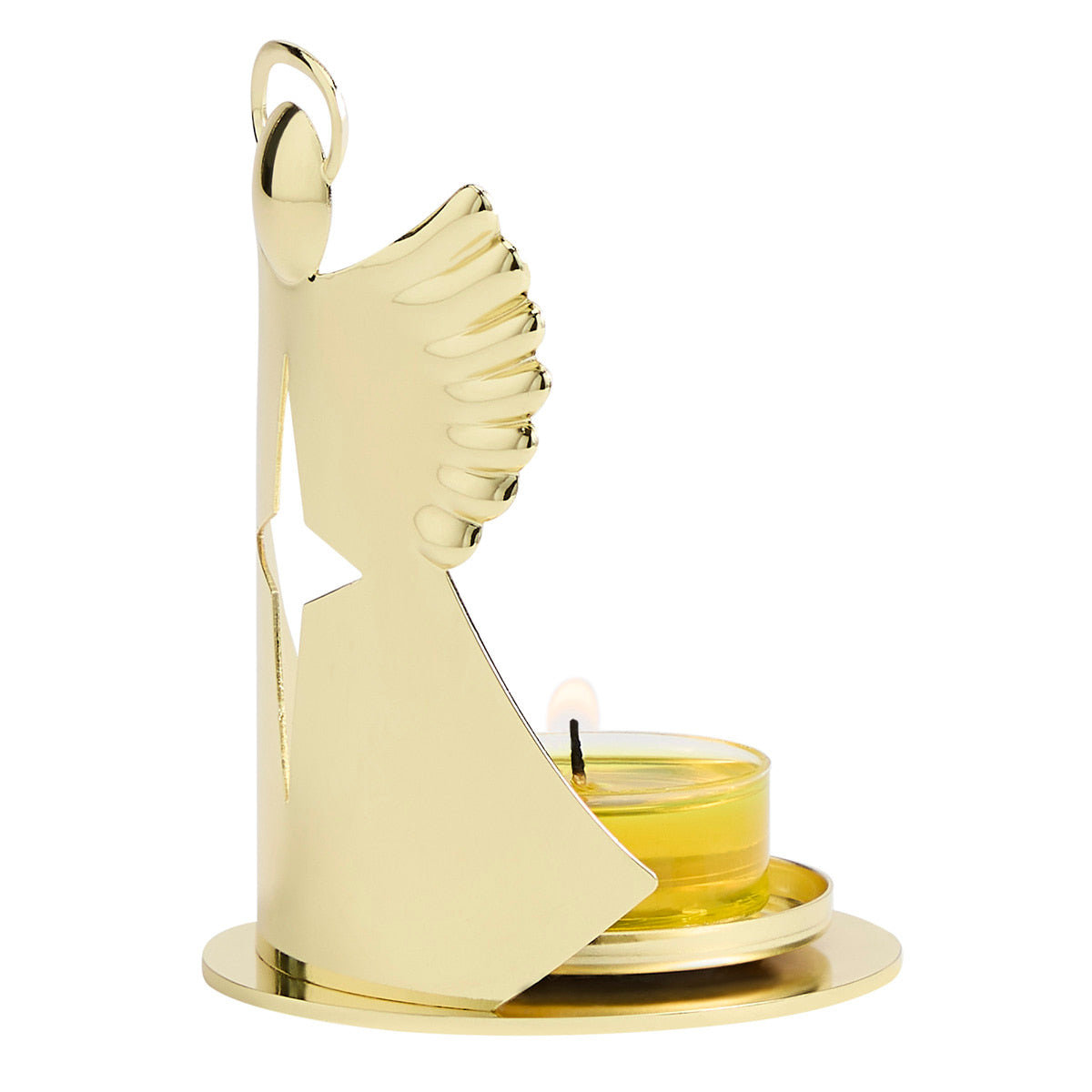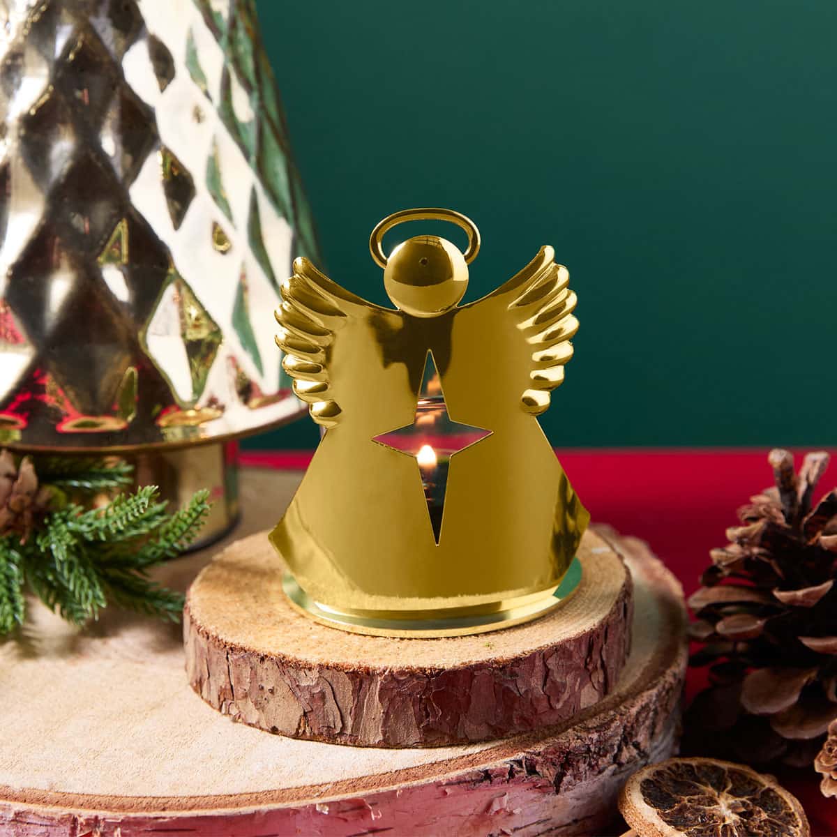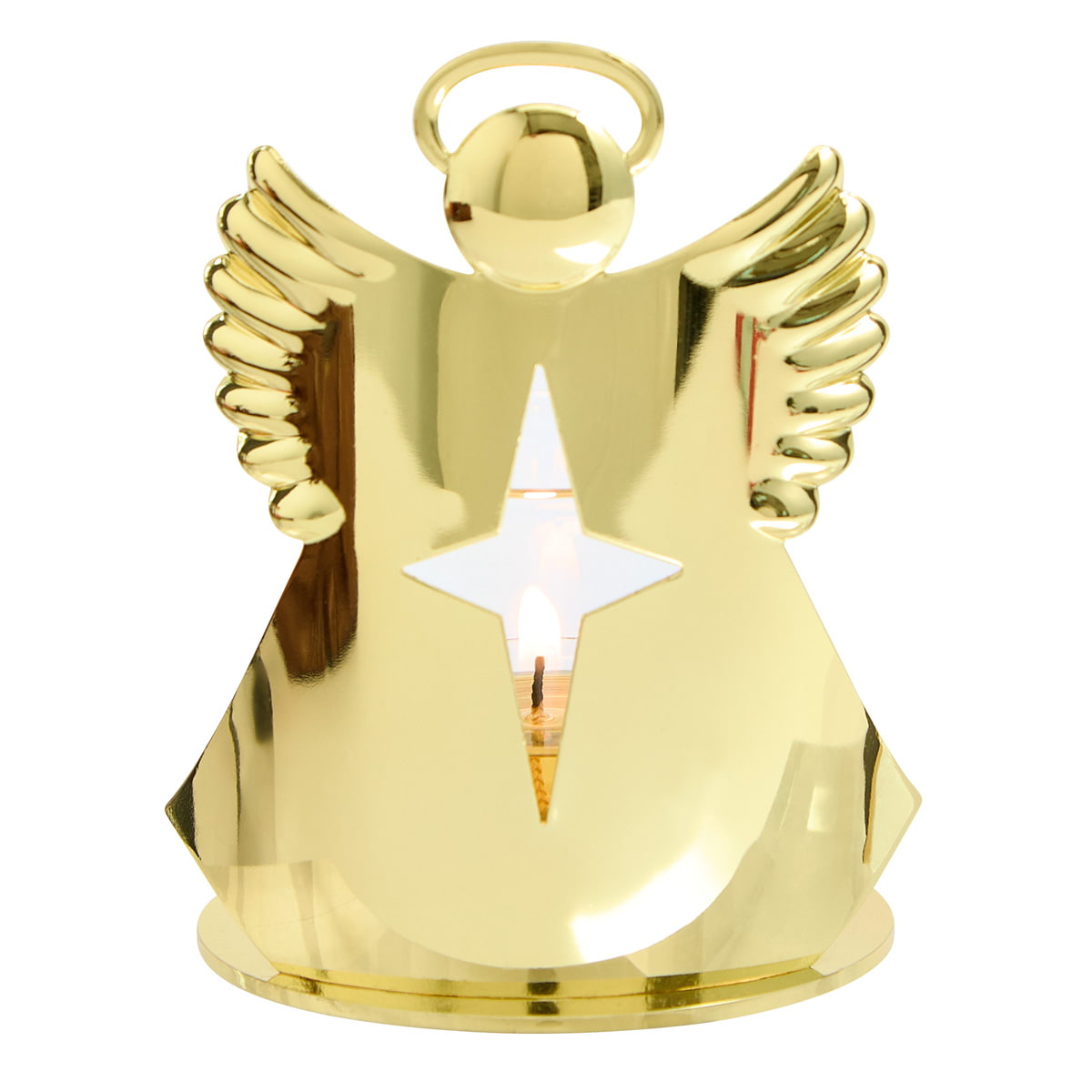 Meet your new golden guardian! With a twinkle in her star-shaped cutout and a gleaming golden finish, this angel is here to light up your space – and your mood. She’s the perfect plus-one to our silvertone Star Angel, but she shines just fine on her own. Stamped and shaped for extra flair, she comes with a glass cup ready to cradle your favorite votive or tealight. Just add a candle, and watch her glow like she’s straight from the heavens.