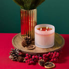 Golden Vanilla is a warm, comforting scent that blends rich vanilla bean, creamy amber, and milky coconut, finished with soft notes of vanilla sugar and musk. Poured into a ridged glass jar sprayed in soft grey, this candle features colored wax and three wicks for a bright, even burn. It’s the perfect way to add a golden glow to cozy nights, festive gatherings, or everyday moments.