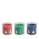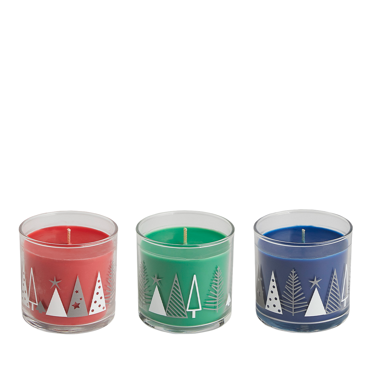 Mini Jar Candle Sampler Trio. Trio of 4.8 oz. (138 g.) jars, one in each fragrance: Blueberry Tart, Winter Berries, Evergreen Fir in decorative packaging. Burn time: 35-45 hours each.