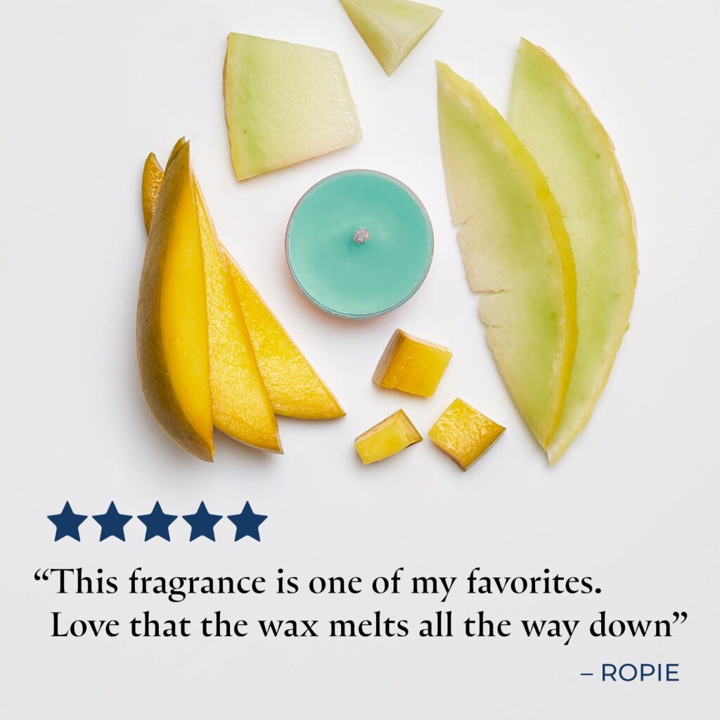 Take a bite of Honeydew and refresh yourself with our 3-Wick Jar Candle, filled with premium clean-burning wax. Luscious green melon and juicy ripe mangoes are accented with a hint of musk.