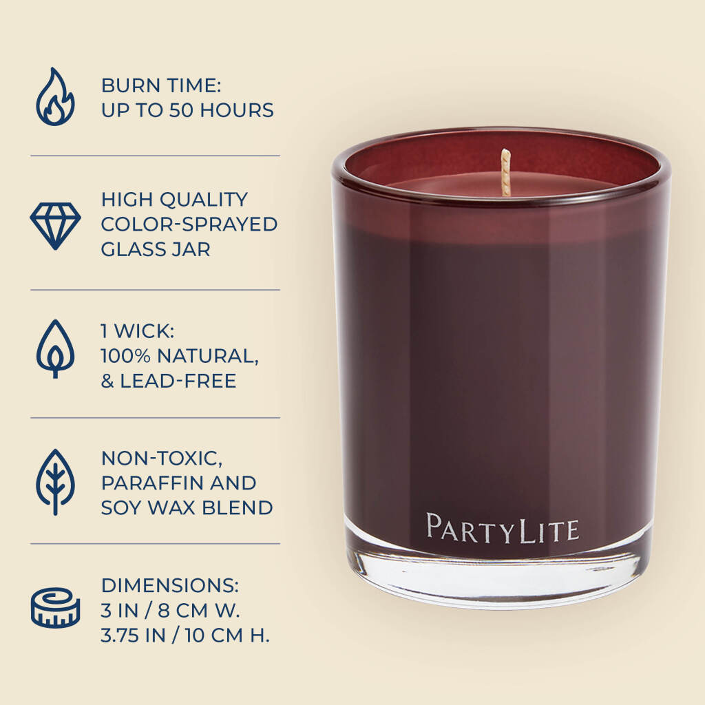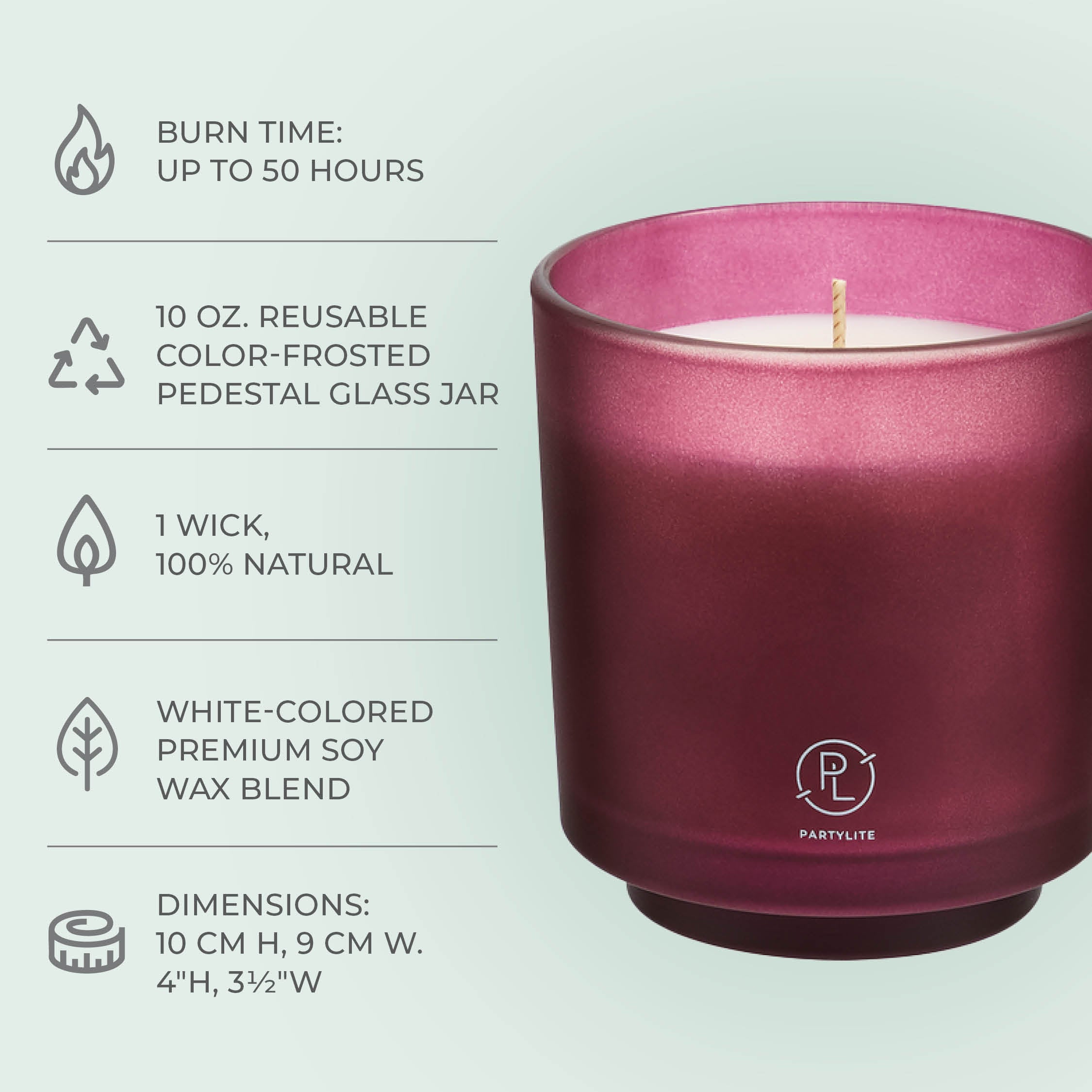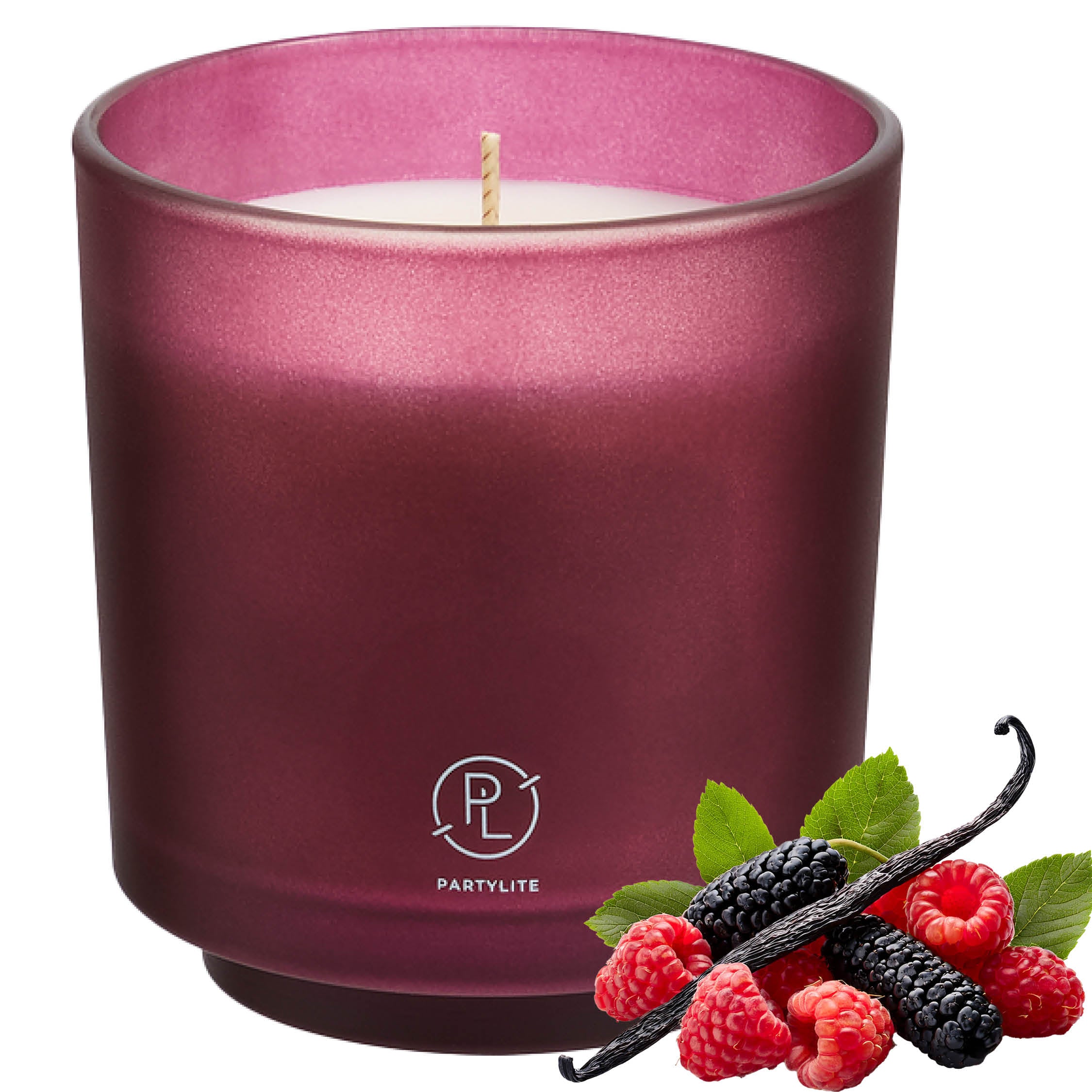 The small jar candle that packs a big fragrance punch! A classic PartyLite fragrance is poured into colored wax with matching spray-colored jar. Choose Mulberry for a fruity blend of sweet-tart mulberries, plump raspberries and woodland strawberries splashed with vanilla and musk.
