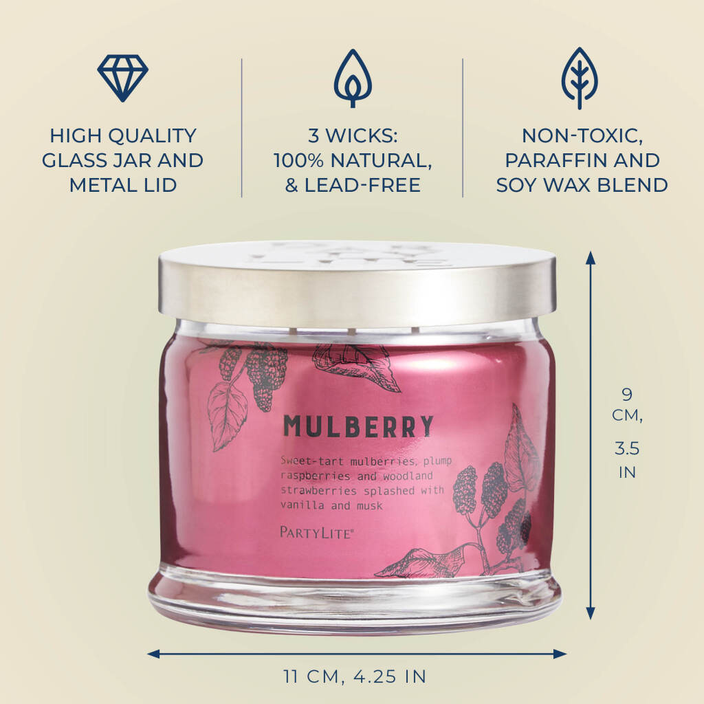Our Mulberry Scent Plus® Heart Melts are infused with a stunning fragrance of tart black currant, sweet blackberry, juicy mulberry and jewels of pomegranate which are blended for a perfect berry twist. Break off sections of our wax melts and use with our ScentGlow® or SmartBlends™ Warmers, sold separately.