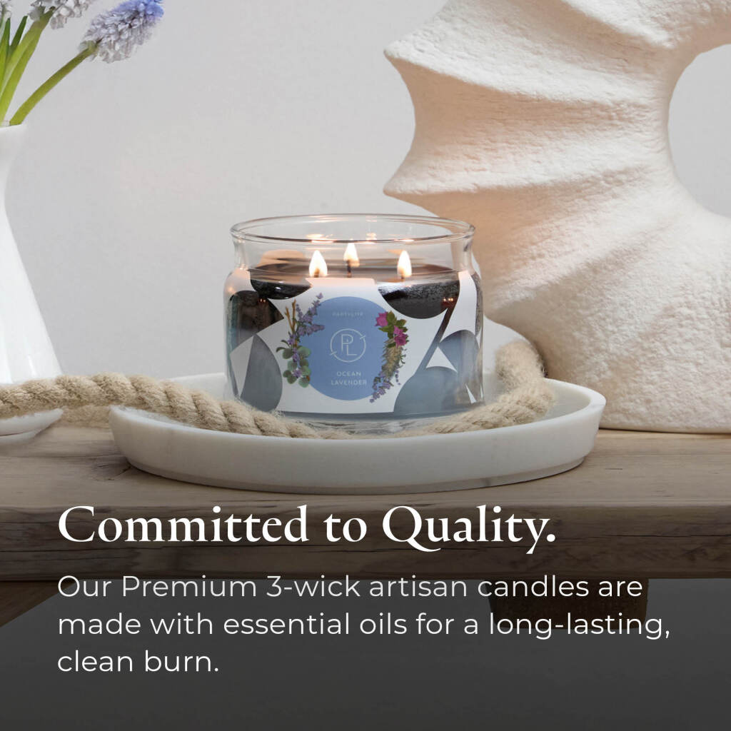 Enjoy the serene, coastal vibes of our Ocean Lavender 3-Wick Jar Candle, capturing the essence of a seaside Vespa ride. This refreshing blend mixes marine notes and soothing lavender with a base of warm, salted amber. Presented in vibrant, colorful wax with a stylish decorative sleeve and lid, it features three wicks for even scent distribution. Perfect for infusing your space with a fresh, oceanic aroma.