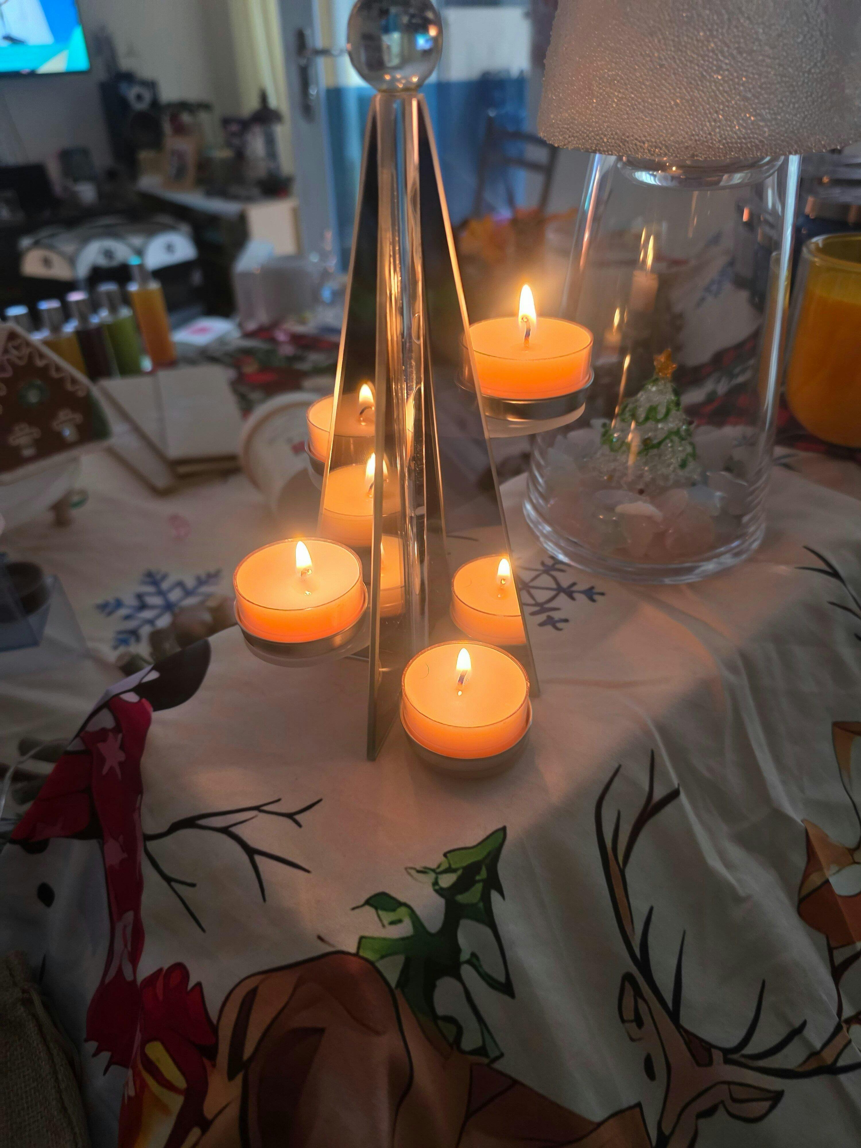 Bring a warm, enchanting glow to your space with this sculptural tealight holder. Designed with translucent mirrored panels, it reflects the flickering light of four tealights from all sides and at varying heights, creating a captivating play of light and shadow. Perfect on its own or as part of a festive centerpiece – pair it with the Medium and Large Reflective Trees to build a magical tablescape.
