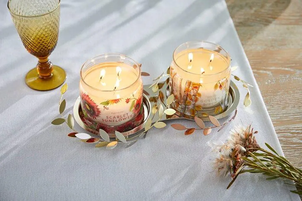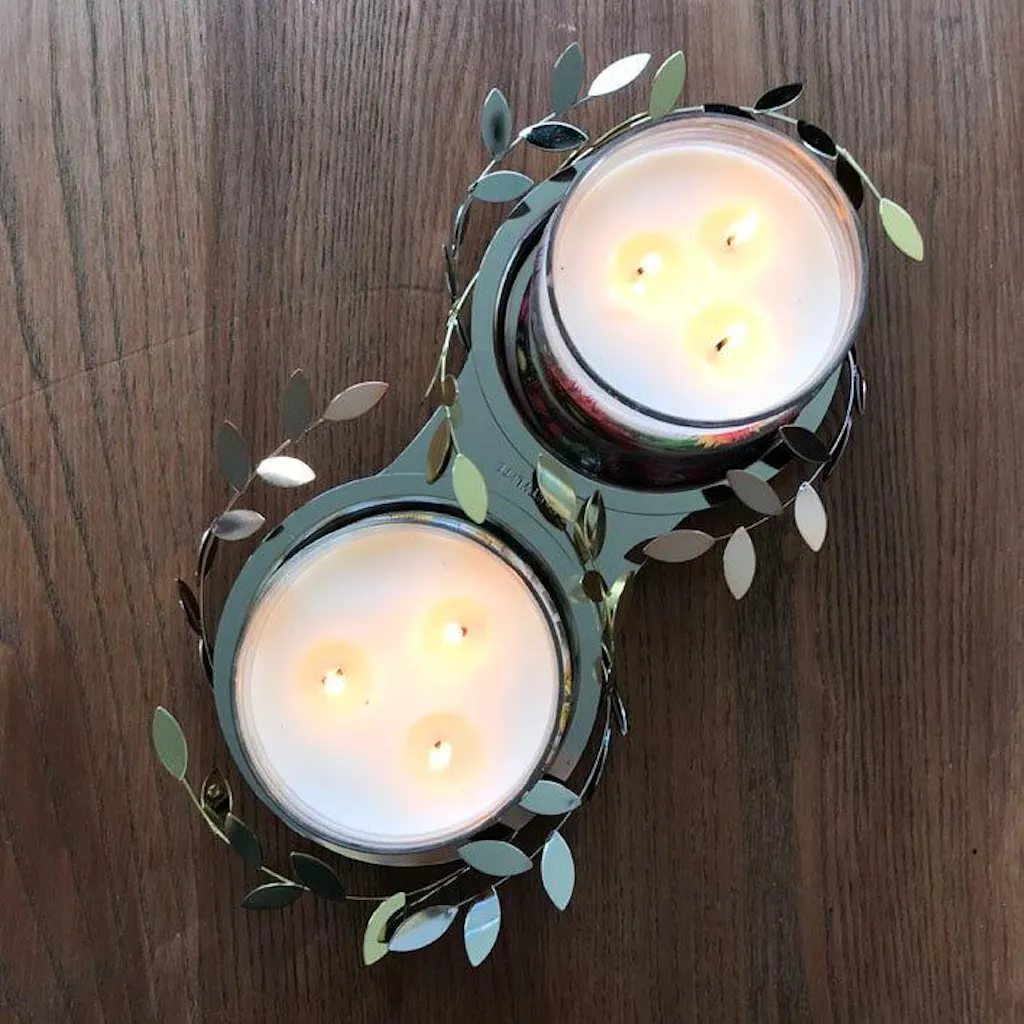 I enjoy the tricolor metals on this piece and the way it can display two jar candles. I am using these for fall decor however depending on your personal style, you could have these out year-round.