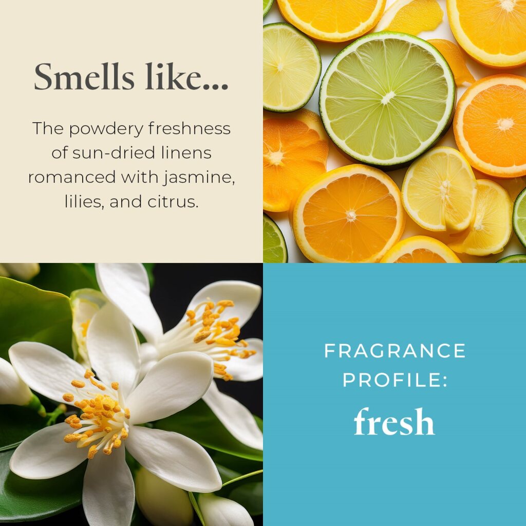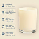 Let the light, airy fragrance of sun-dried linens infused with jasmine, lily, water flowers, and citrus refresh your space. This candle captures the essence of a bright, breezy day, encapsulated in a color-sprayed jar that reflects its clean, fresh scent. With a single wick and up to 50 hours of burn time, it offers a gentle, soothing presence that enhances any room.