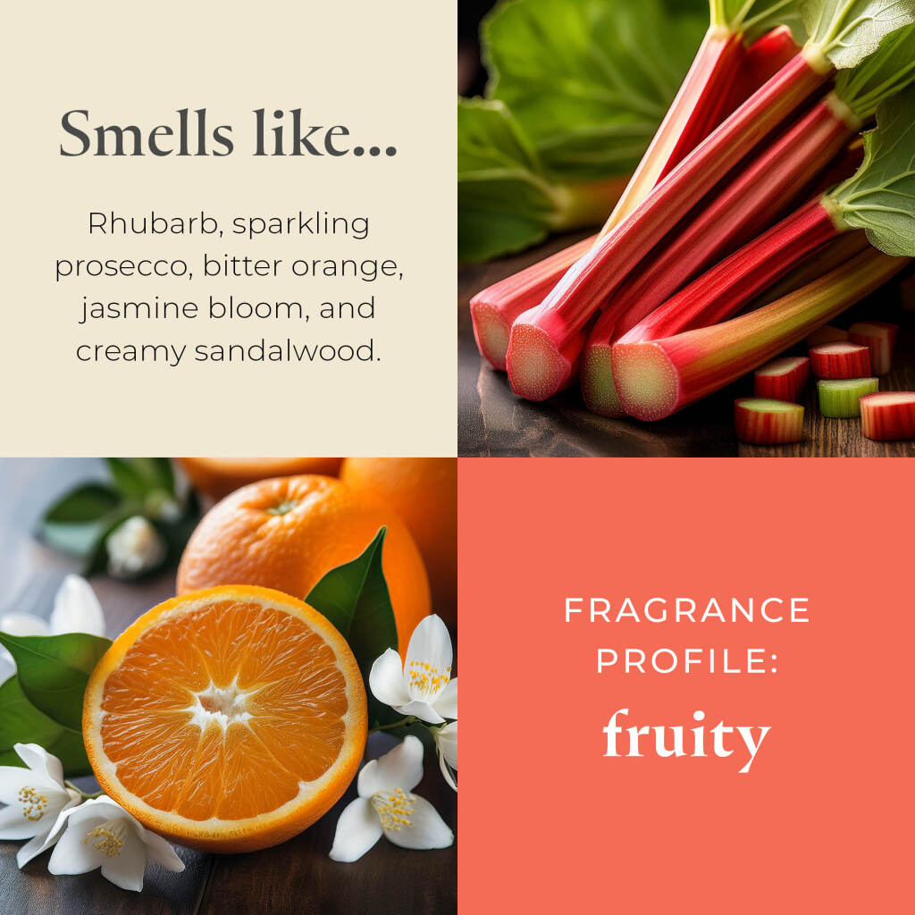 Let the effervescence of sparkling prosecco and bitter orange dance across your senses in this 3 wick jar candle. The bright scent mixes with soft whispers of jasmine, rhubarb and creamy notes of sandalwood and white musk, all combined in a premium quality candle with the finest wax and pure cotton wicks. This lidded jar candle is wrapped in a vibrant sleeve design, created for the finest fragrance experience at home.