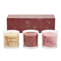 Enjoy a collection of scents inspired by your favorite sips. This trio of Wine Time candle jars features our true-to-life wine blends in decorated jars and colorful wax to match their aromas. With one each of our Life is a Cabernet, Can You Say Chardonnay? and Rosé All Day fragrances.
