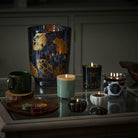 Experience the sophisticated allure of this premium fragranced jar candle. As it burns, it unfolds a masculine and captivating fragrance, starting with fresh, sparkling notes of bergamot, apple, and rich pepper, combined with a hint of coconut. A floral heart of jasmine and rose leads into a complex base of patchouli, smoky guaiac wood, wet tobacco, and moss, filling the room with a rich, deep scent that's both invigorating and soothing. Designed with three wicks and colored wax in a decorative sleeve, for over 40 hours of even burn.